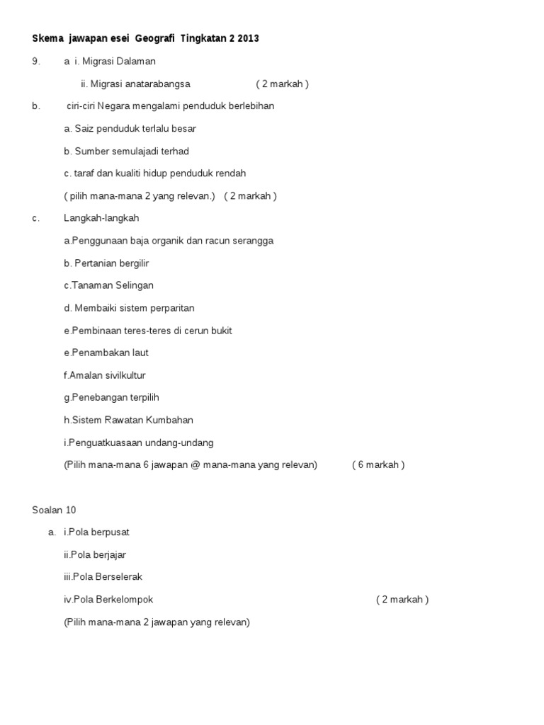Skema Jawapan Esei Geografi Tingkatan 2 2013 Pdf